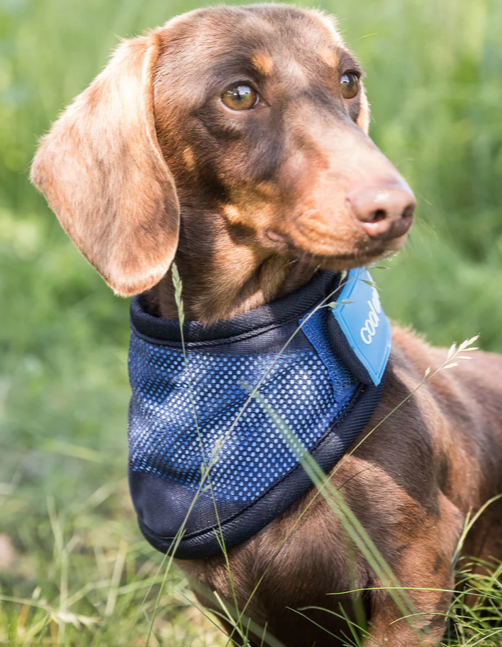 Dogs are sensitive to heat because they can’t sweat the way humans do. So, it’s important to ensure that your dog does not get too hot or overheated during hot days and during hard training. With the bandana, you effectively cool down the dog around the neck, where there are many superficial blood vessels that effectively help to cool down the rest of the body. Works great in conjunction with our Cool on Track Dog Coat.