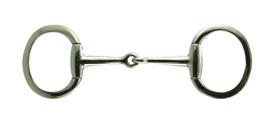 The Flat Ring Eggbutt single jointed snaffle bit is mild, versatile and doesn't pinch the horse's mouth due to the eggbutt design. Made of stainless steel for years of use, this eggbutt snaffle features flat, 3 inch ring cheeks. The mouth piece does not rotate around the ring. This flat ring eggbutt snaffle is available in a wide range of sizes to fit any horse - from ponies to draft horses.