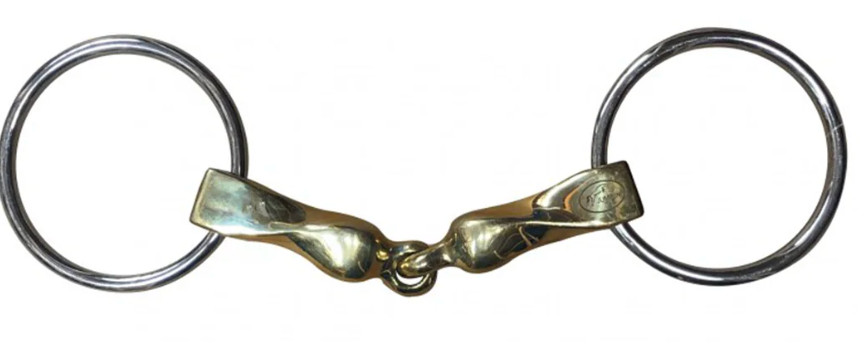 The thick twisted mouthpiece gives enough bite for strong horses without being as harsh as a traditional thinner slow twist. The loose ring gives a lot of play in the horse's mouth and is a great schooling bit.