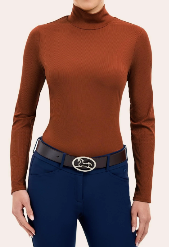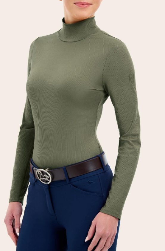 The Joelle Mock Neck is the perfect choice to stay on trend this season. Made with our luxurious ribbed fabric, this style features perforated sleeves and collar for enhanced ventilation, subtle branding, and UPF 30+ sun protection—making it a sophisticated and versatile addition to your schooling wardrobe.