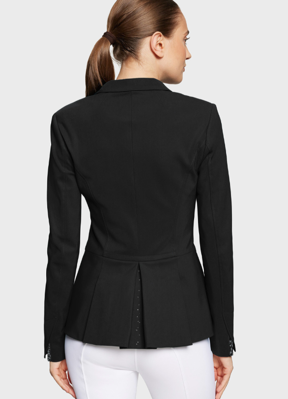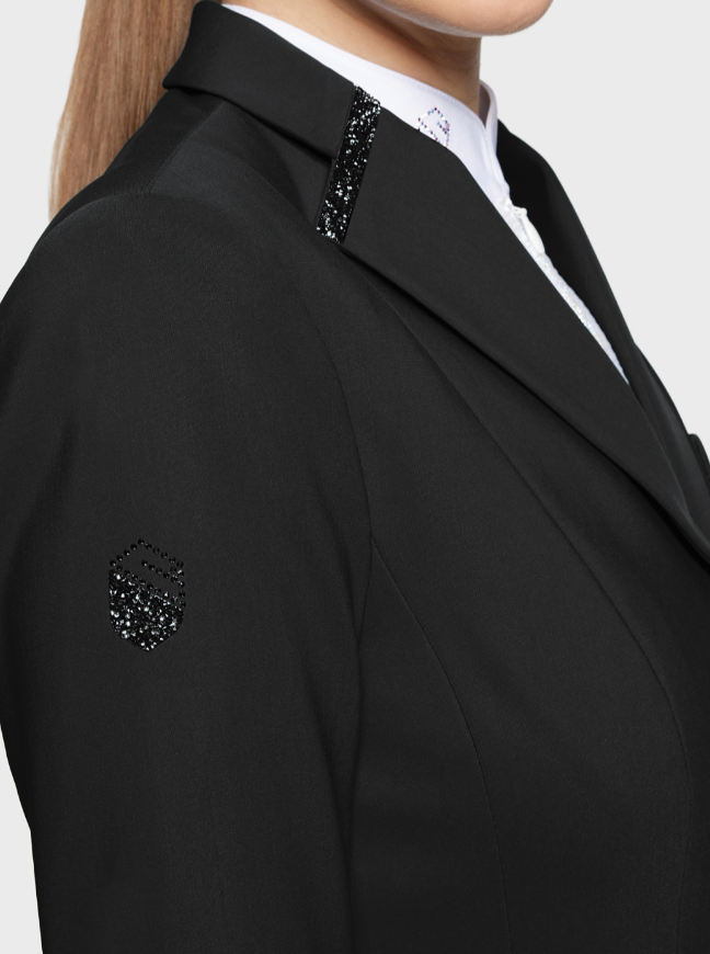 Victorine Premium women's equestrian competition jacket. Designed for riders looking for detailed sparkling style, performance and durability in shows and competitions, with 3 buttons.